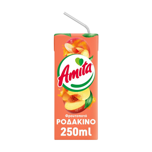 Φρουτοποτό από πολτό ροδάκινου. Οι χυμοί Amita δεν περιέχουν συντηρητικά και πριν τους ανοίξετε μπορείτε να τους αφήνετε εκτός ψυγείου χωρίς τον κίνδυνο αλλοιώσεων. χάρη στην παστερίωση τους και στις χάρτινες συσκευασίες TetraBrik Aseptic